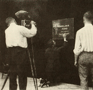 Signing the opening title card for SHOULDER ARMS (1918)