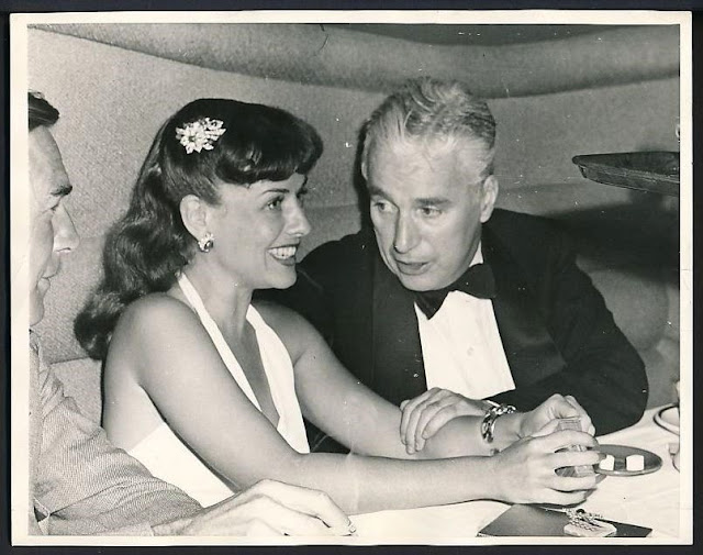 Note that Paulette appears to be wearing her favorite diamond and emerald jewelry set given to her by Chaplin in 1938. See other photos of the couple at the Mocambo here and here.