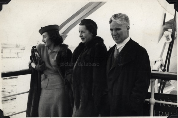 Embarking from Los Angeles Harbor aboard the SS President Coolidge, the couple are accompanied by Paulette's mother, Alta, and Chaplin's valet, Frank Yonamori.
