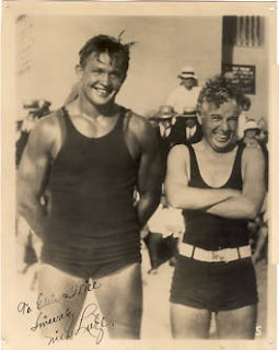 There is also the pic I posted not too long ago of Charlie with wrestler Nick Lutze which appears to me to have been taken on the same day (judging from Charlie's hair and bathing suit). Perhaps they were having some sort of swimming party on the set.